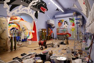 Taki: “So we had someone on a scissor lift, and I used a laser pointer to create the base outlines of the whale and shark. It worked really well, but for the smaller images, we just had to wing it.”